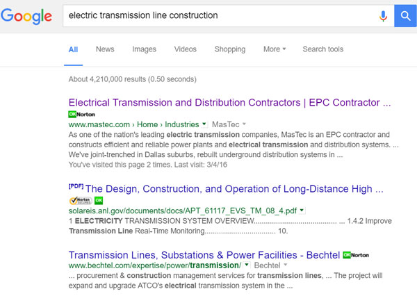 Run a test right now, input the bread and butter service your company offers. For example, if your company offers electric transmission line construction, does your company appear on the first page of Google search?