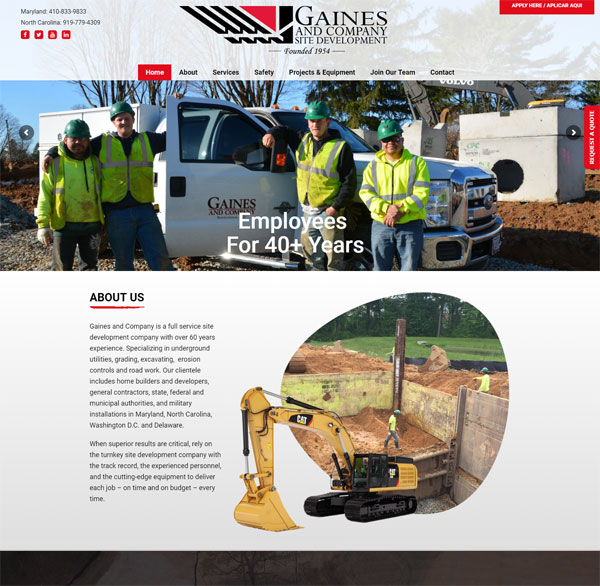 Gaines and Company vastly expanded their site development service offerings on the new website.