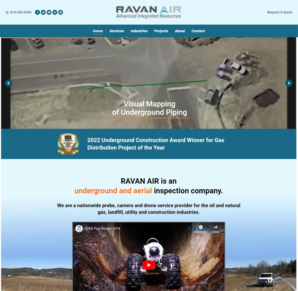 Revamped the website to reflect their massive service expansion to include aerial and underground infrastructure inspections.