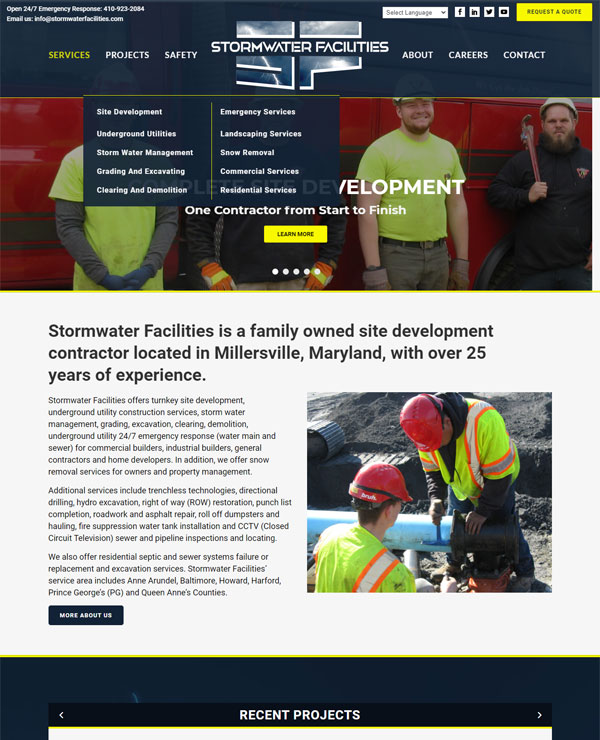 We proudly moved Stormwater Facilities into the big leagues with a new logo, expanded service offerings and safety section.